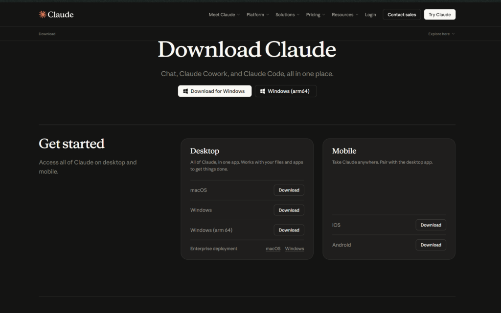 Rendez-vous sur claude.ai/download. Téléchargez la version correspondant à votre système (Windows ou macOS) et installez-la comme n’importe quelle application.