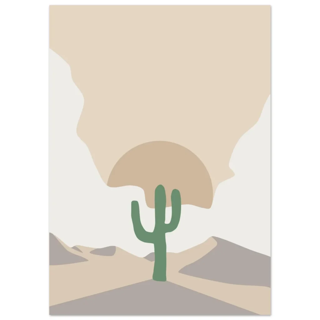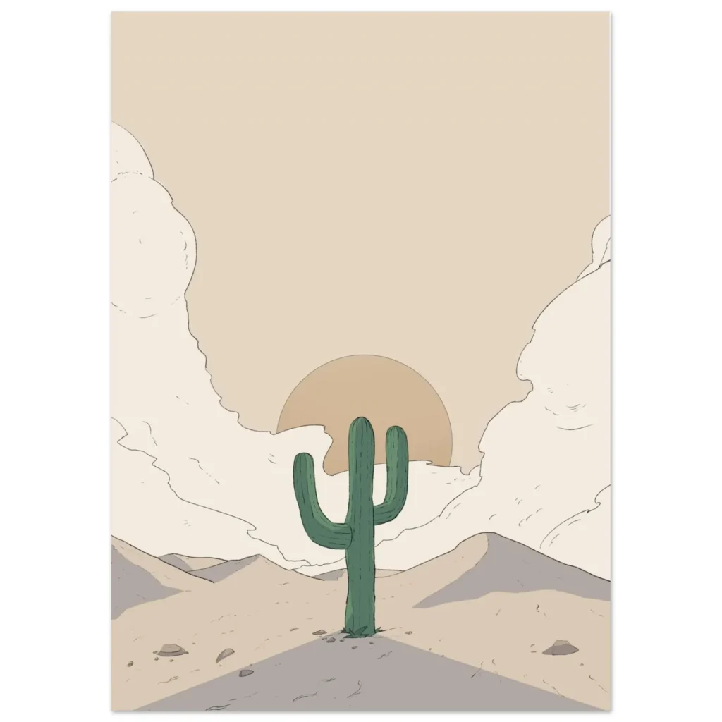J’ai choisi une palette de couleurs assez discrète, presque monochrome, avec une tonalité chaude. L’idée : contraster avec la solitude du paysage et détacher le cactus du fond.